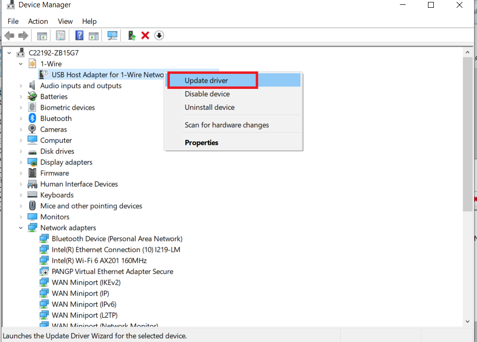 - Right click on USB Host Adapter and select "update driver" (device more than likely will be marked with an error or mislabeled).