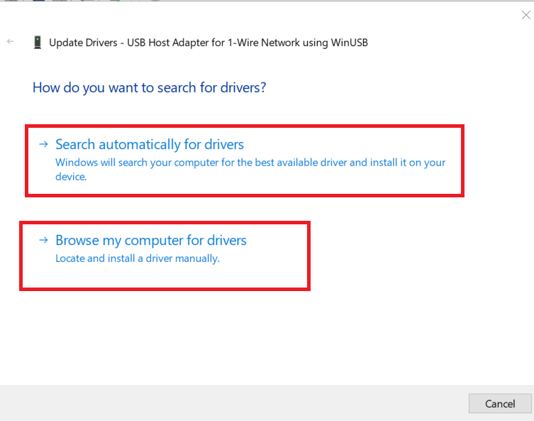 - Select the appropriate install. Use either Search if you just need to update the driver, or Browse if the driver is not loaded at all or incorrectly.