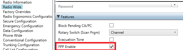 - Front Panel Programming (FPP) needs to be enabled under Radio Wide > Features > FPP Enable
