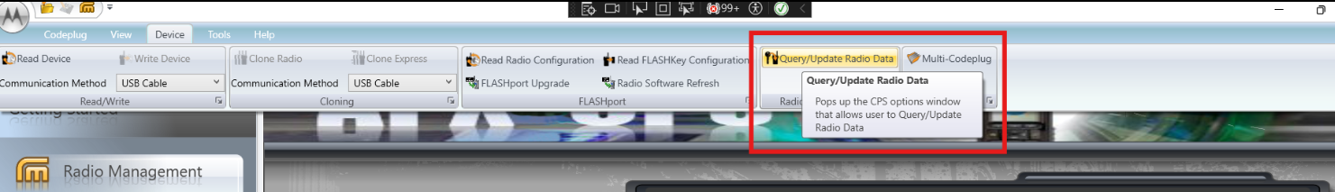- Go to Device > Query/Update Radio Data
