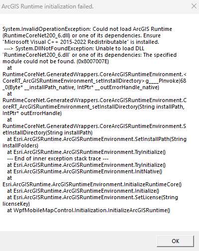 - Error when opening the Mobile map: ArcGIS Runtime initialization failed.